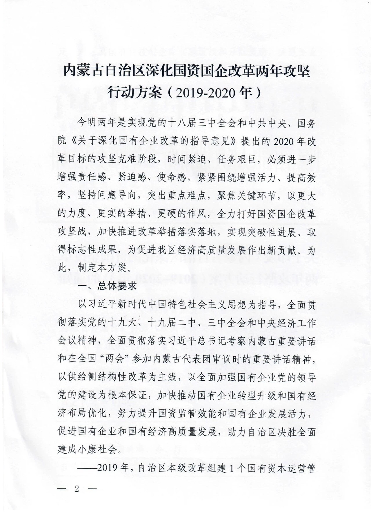 經(jīng)自治區(qū)人民政府有關(guān)領(lǐng)導(dǎo)同意,現(xiàn)將《內(nèi)蒙古自治區(qū)深化國(guó)資國(guó)企改革兩年攻堅(jiān)行動(dòng)方案(2019年-2020年)》印發(fā)給你們,請(qǐng)認(rèn)真貫徹執(zhí)行。