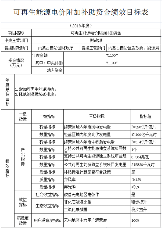 附件:財(cái)政部可再生能源電價(jià)附加補(bǔ)助資金績(jī)效目標(biāo)表
